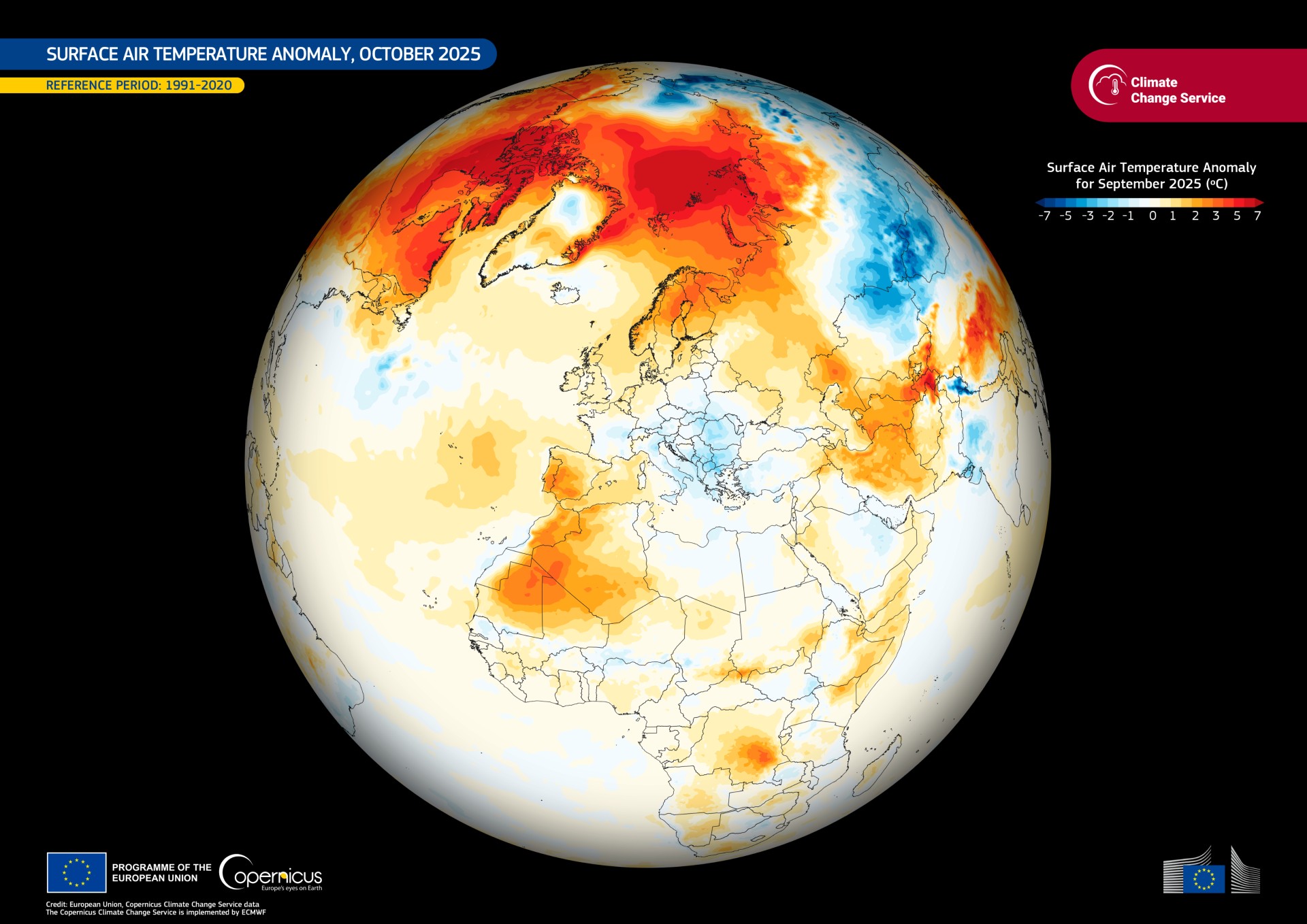 Le anomalie risultano particolarmente forti nelle regioni artiche e sub-artiche: sul Mare Artico a nord-est di Svalbard e sull’arcipelago canadese artico si sono osservate anomalie fino a +8 °C rispetto al normale. Copernicus