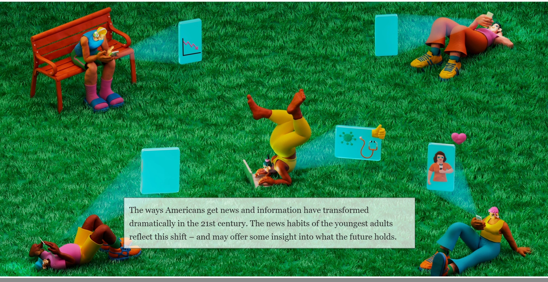 Il modo in cui le persone si informano è cambiato radicalmente nel XXI secolo. Secondo lo studio ” Giovani adulti e il futuro delle notizie del Pew Research Center nessun gruppo mostra questo cambiamento più chiaramente dei giovani adulti. Le persone sotto i 30 anni stanno plasmando il modo in cui le informazioni si diffondono, offrendoci un possibile sguardo sul futuro delle notizie.