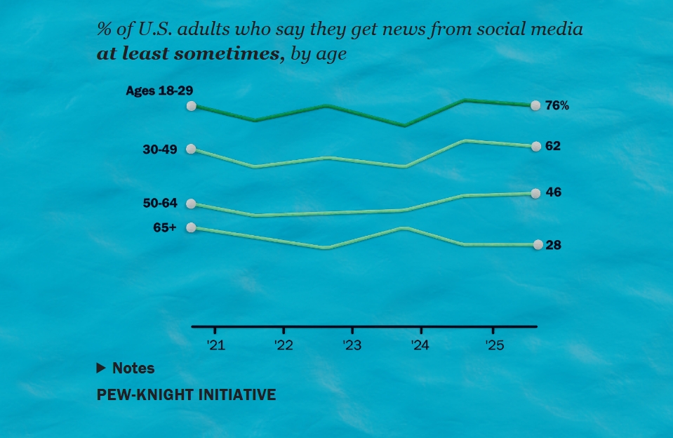 Letti insieme, i dati del Pew raccontano un futuro dell’informazione che non passa dalla scomparsa delle news, ma dalla loro dissoluzione nel flusso digitale. Per i giovani adulti, informarsi non è più un gesto dedicato, ma un sottoprodotto dell’essere connessi. Come l’elettricità: invisibile finché non manca