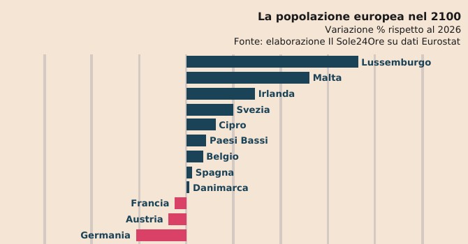 Ad essere pignoli la previsione, elaborata da Eurostat, è quella di una riduzione dell’11,7%. Significa, a grandi linee, che dove oggi ci sono otto europei all’inizio del prossimo secolo ce...